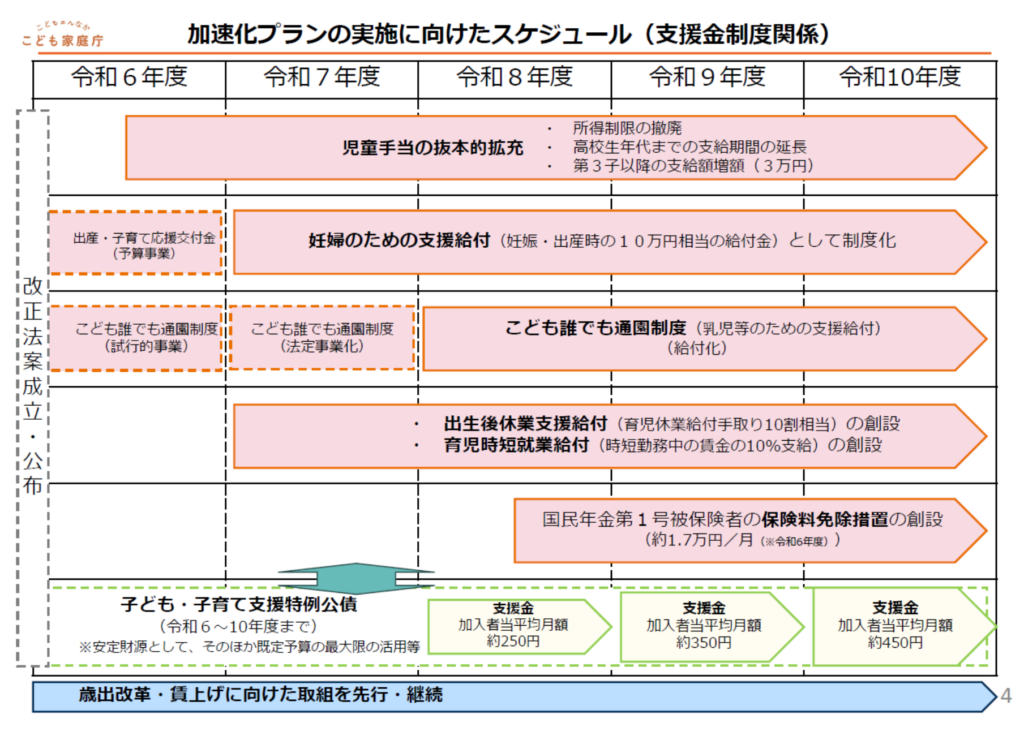 徴収された支援金は、法律により以下の少子化対策に限定して使われます。